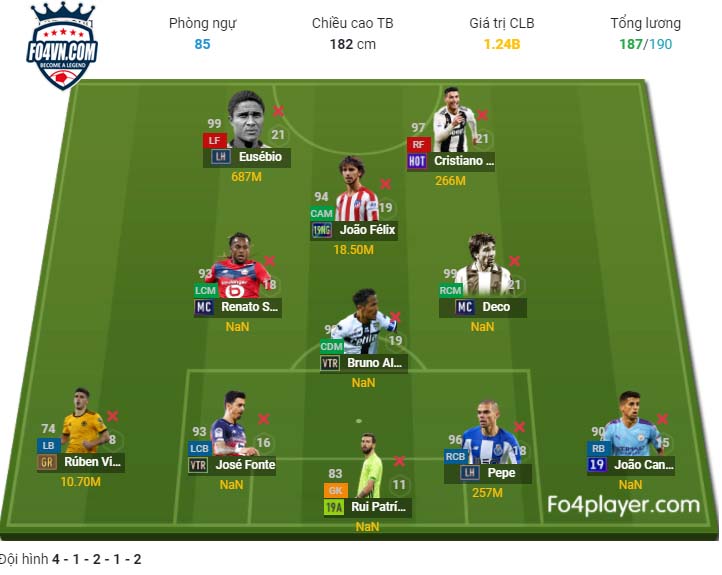 * Team Bồ với bộ đôi tiền đạo max speed, các vị trí đồng đều. Cả Cr7 và Eusebio đều là top tiền đạo trong game sau update meta.