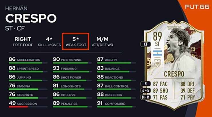 Ngoài ra thì chân của Crespo vẫn chỉ là 4/5 trong khi ở phiên bản cũ ở FO3 mùa World Legend thì Crespo có hai chân 5/5. Ở FIFA 23 thì Crespo cũng có mùa giải 5/5. Hi vọng cựu tiền đạo của Chelsea sẽ được nâng cấp chân trái lên hàng 5 sao để giúp cho trải nghiệm của người dùng được tốt hơn.
