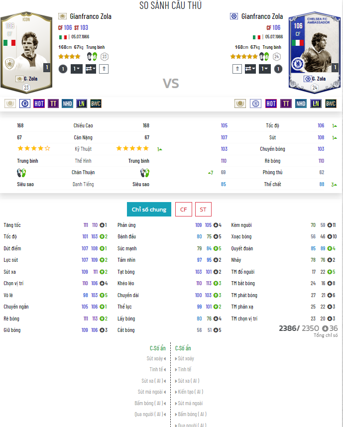 Có một sự thật là đa phần người chơi thích dùng Zola CFA hơn là Zola ICON bởi chỉ cần so sánh hai mùa giải với nhau thôi bạn cũng sẽ thấy là mùa CFA ngon hơn hẳn, dù chỉ số của hai mùa là tương đương nhau. Từ chỉ số ấn cho đến các yếu tổ và mặt dứt điểm, tốc độ thì mùa CFA đều hay hơn. Vậy thì có nên chăng một mùa được coi là ICON lại thấp hơn mùa thường đã ra đời 1 năm nay hay không ? Zola tuy ở các sever Việt - Thái ít được sử dụng nhưng ở sever Hàn lại rất được ưa chuộng