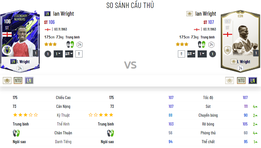 Huyền thoại của Arsenal cũng gặp trường hợp tương tự như Eto, khi mà mùa LN của ông có hai chân 5/5 trong khi mùa ICON chỉ là 4/5 khiến cho đa phần người chơi đều chọn lựa LN để xây dựng đội hình. Thậm chí Ian Wright còn được xếp vào hãng ngũ những ICON ít người dùng nhất hiện nay.