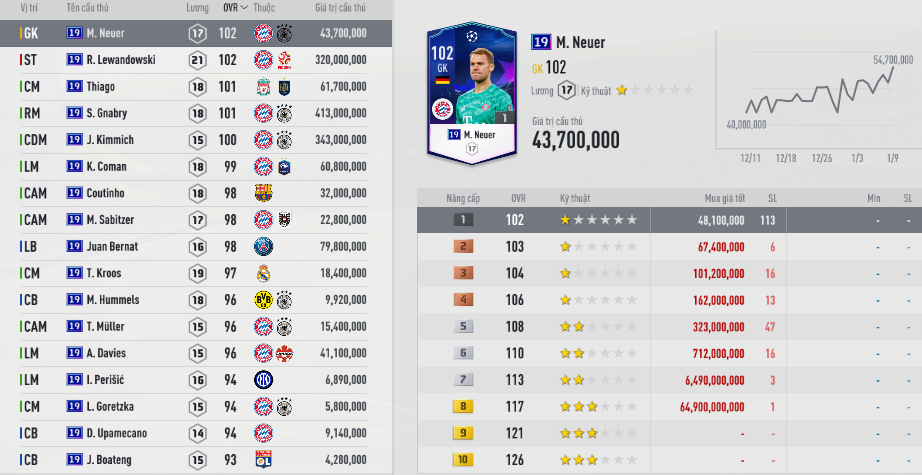 Mùa giải 19UCL đặc biệt là team Bayern là một thế lực thực sự tại GLXH, thậm chí ở sever Việt Nam chúng ta còn kháo nhau : muốn leo rank nhanh cứ làm team Bayern là sẽ phá đảo được thế giới ảo. Không có miếng thì sao có tiếng phải không các bạn, và đúng là team Bayern 19UCL chiếm gần như toàn bộ các vị trí hay nhất cho chế độ này