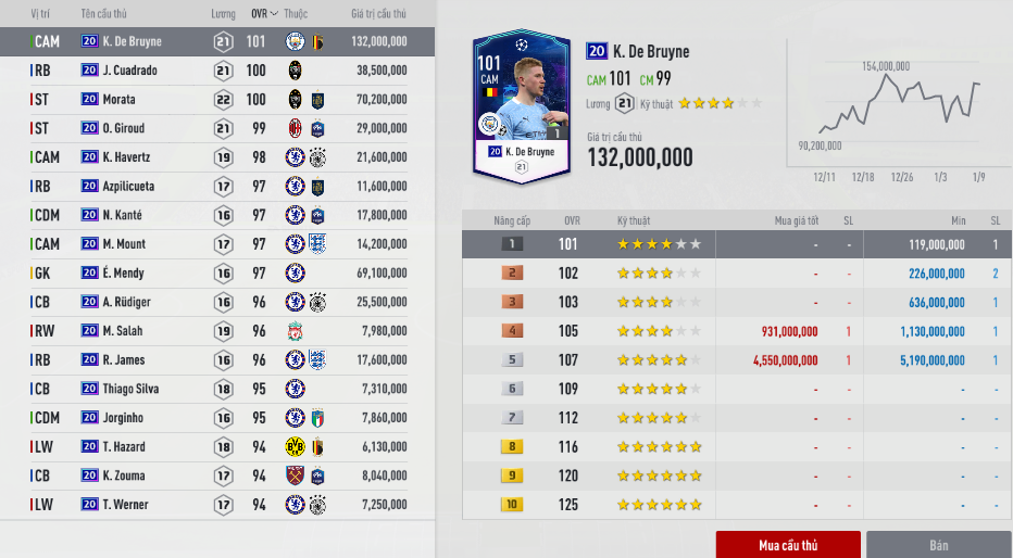 Phần đông người chơi đều sở hữu cho mình một cầu thủ mùa live trong đội hình, điển hình là vị trí thủ môn của Courtois và hậu vệ trái Theo Hernandez. Với chỉ hai cầu thủ này mà đã chiếm con số 6,3% thì chắc các bạn cũng hiểu nó nhiều đến như nào