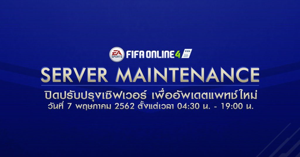 Vào lúc 16h ngày 6/5/2019 trên fanpage chính thức của FIFA Online 4 Thái Lan đã đăng tải dòng trạng thái về việc bảo trì máy chủ và update các tính năng mới.