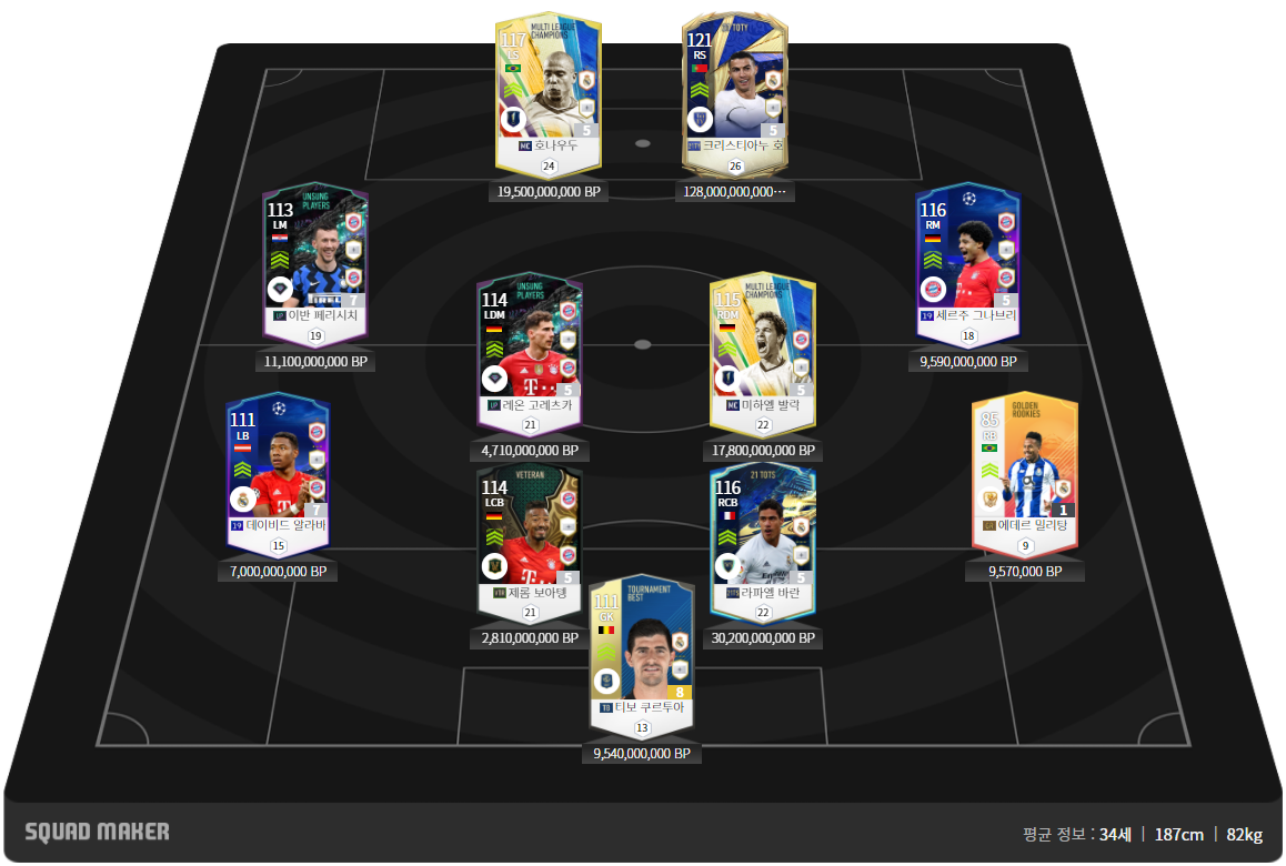 Nhìn vào đội hình " hết nước chấm" này có lẽ bạn chỉ thắc mắc là tại sao không thấy Gullit trong đội hình mà thôi đúng không? Tuy nhiên cách xây dựng đội hình này là hoàn toàn có dụng ý của chủ nhân của nó. Đây chính là buff 5-1-5 của hai team Bayern và Real, khi mà Alaba chính là giao thoa của cả hai CLB