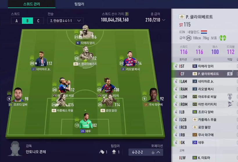 Với mức lương 210, việc gia cố hàng phòng thủ vốn không được đánh giá cao của Barca trong game bằng cặp đôi ICON là Puyol và Blanc đã ngốn kha khá lương của toàn đội. Ở hàng tiền vệ cũng là hai cái tên giàu sức chiến đấu là Vidal và Rakitic. Với những fan của Barca thì có lẽ sẽ thấy nó không được đúng lắm về tiki-taka. Nhưng phải nói rằng đây là đội hình phù hợp với meta hiện tại của game. Khi mà những cầu thủ nhỏ con quá có ít đất diễn.