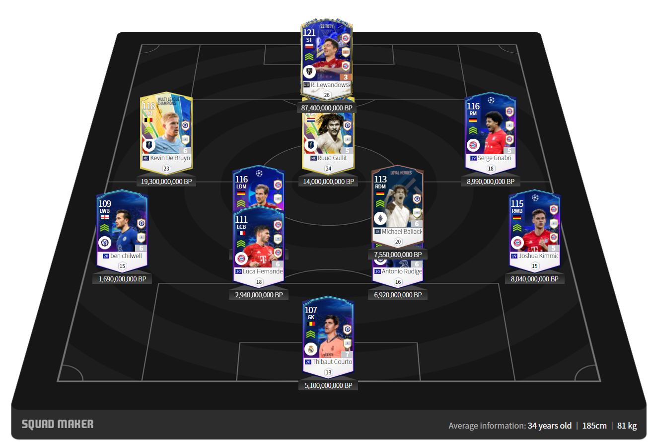 Với nòng cốt là những cầu thủ thuộc team color Bayern Munich. Park Chang-Hwa đã mix thêm một vài cái tên khác như Rudiger, De Bruyne, Gullit, Chilwell nhằm tăng cường độ "bá" cho đội hình của mình. Có thể thấy hậu vệ mà HLV này sử dụng chính là Rudiger 20UCL. xin được nhắc lại là hiện ở Hàn lương vẫn là 210/210
