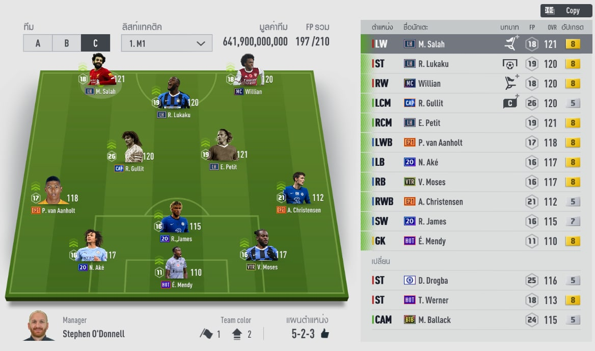 Trong đội hình chúng ta chỉ nhìn thấy sự xuất hiện duy nhất của Gullit mùa Cap, còn lại đều là các mùa giải đã cũ, đặc biệt vị trí thủ môn người được tin tưởng là Mendy chứ không phải Courtoi như mọi khi
