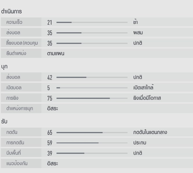 Về các thiết lập có lẽ không có sự khác biệt nhiều với đa phần các HLV hiện nay vì nó đã là công thức chung.