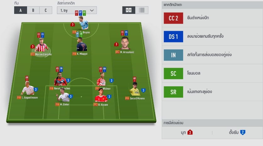 Đội hình này đã bị đảo ngược 1 chút do lỗi hiển thị của game, cụ thể Arnautovic --> ST, Bruyne --> CAM, Mbappe --> RW