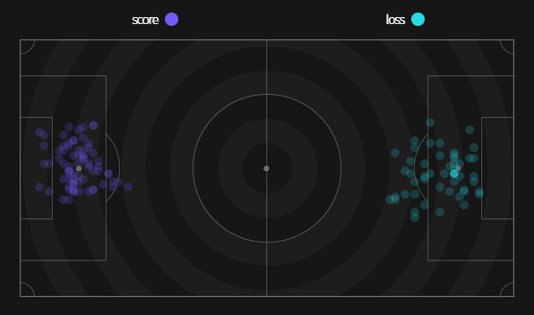 ✔ Cự ly ghi bàn trung bình : 14,7m