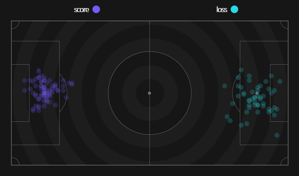✔ Cự ly ghi bàn trung bình : 41,7%
