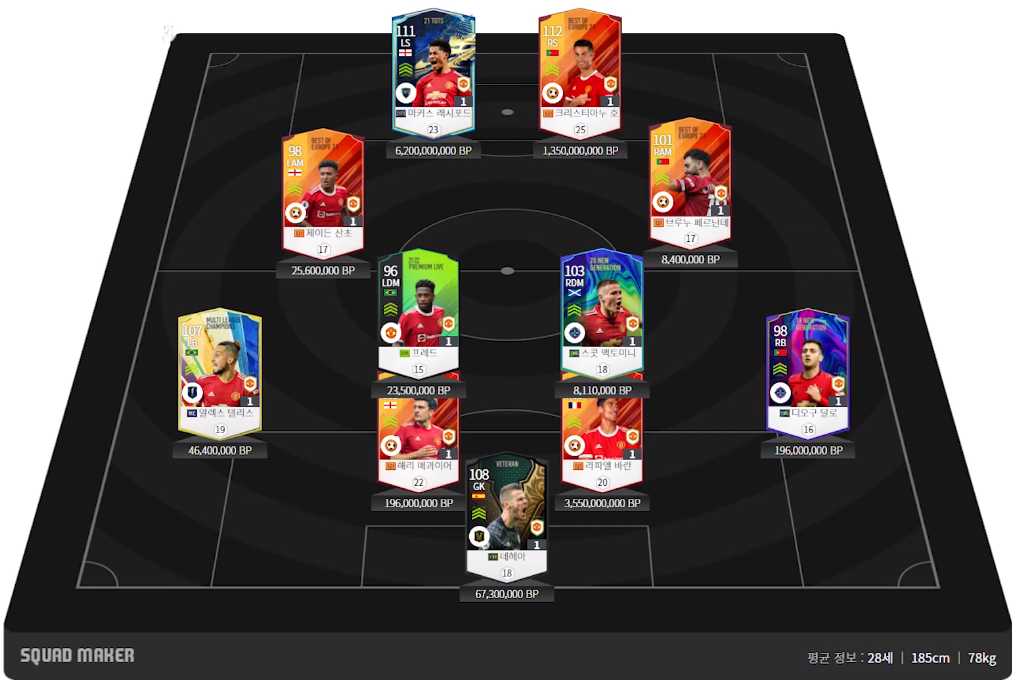 Mức lương của đội hình này là 210 với những cầu thủ đang là nhân tố chủ lực của MU hiện tại