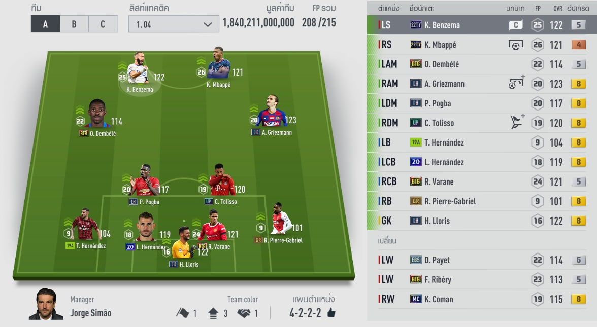 Đội tuyển có rất nhiều những cầu thủ hàng quốc dân trong FO4 sở hữu một sức mạnh cực kỳ đáng nể, tuy nhiên lại khá ít người chơi team color đội tuyển này, một phần vì không biết phát huy hết sức mạnh của team. Fo4vn xin gửi tới các bạn một ví dụ về team Pháp rank siêu sao của một HLV người Thái Lan