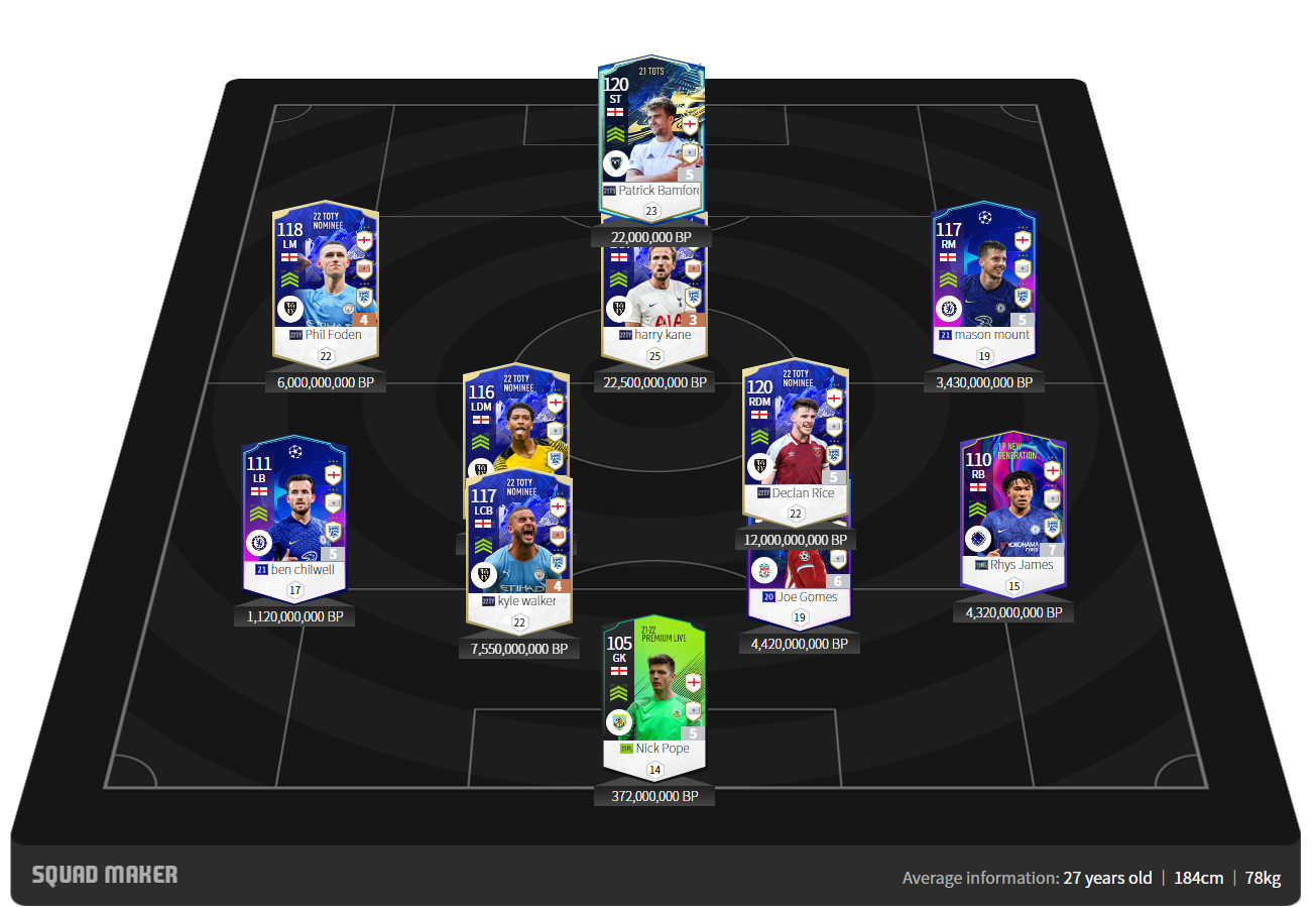 Điều may mắn là team tuyển Anh sở hữu tới 2 cái tên ở hàng tiền đạo đều có chân 5/5 là Bamford và Harry Kane. Đây cũng là hai chân sút cự phách hiện tại tuy tương đối khó dùng một chút. Bamford thì dễ dàng hơn khi vừa đóng vai tiền đạo chủ lực vừa có thể làm nền cho đồng đội được.