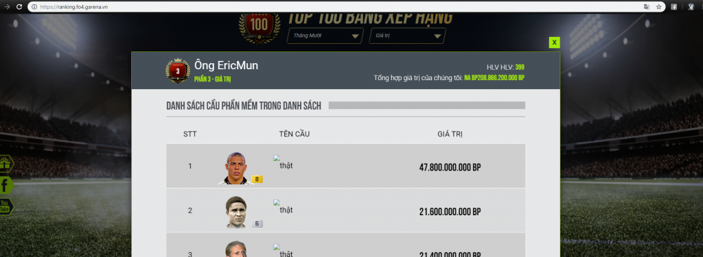 Cách đây vài ngày thì thẻ cầu thủ Ronaldo TC được một người chơi với cái tên quen thuộc SaigonFC ép lên. Đây là thẻ Ronaldo + 8 đầu tiên của sever cho dù chỉ số của thẻ TC thấp hơn nhiều so với các mùa giải NHD và TT. Tuy nhiên đây lại là lợi thế cho việc " hóa vàng"