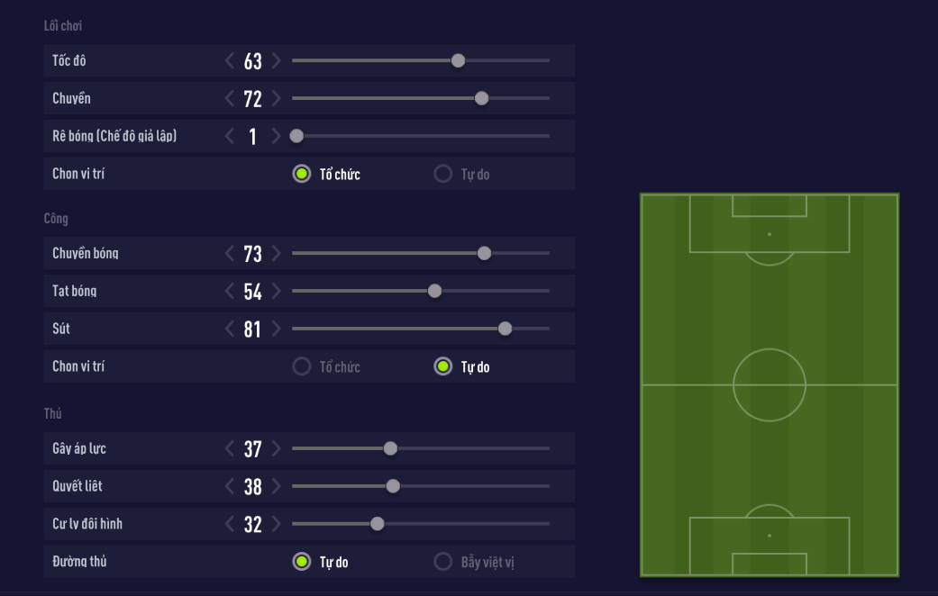 Do có tới 2 cầu thủ tiền đạo, nên bạn luôn ưu tiên một cái tên có chiều cao cũng như thể hình vượt trội với mục đích chuyên trị các pha bóng bổng, còn một cầu thủ có khả năng xâm nhập tốt, tốc độ nhanh.