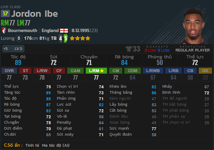 Tốc độ cao, khả năng rê dắt tốt và tạt bóng ổn chính là điểm mạnh. Điểm đáng lưu ý là xu hướng 1-1 khiến cầu thủ này cần những pha Q+S để được kéo lên tham gia tấn công nhanh hơn.