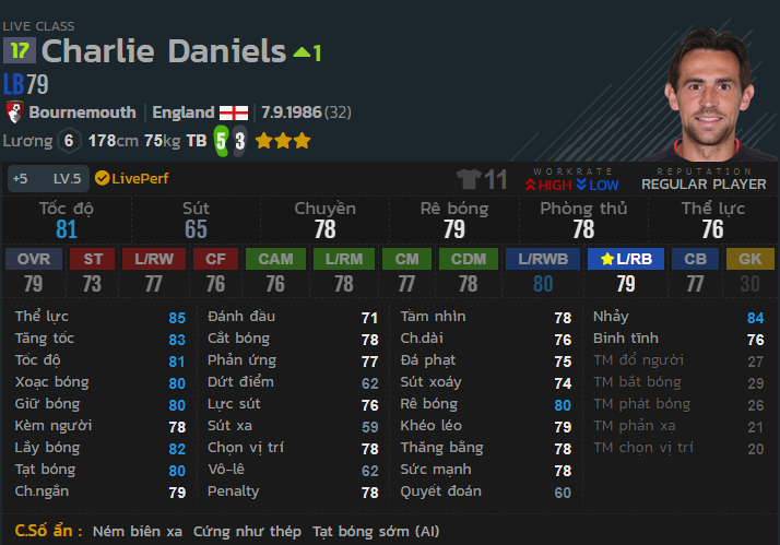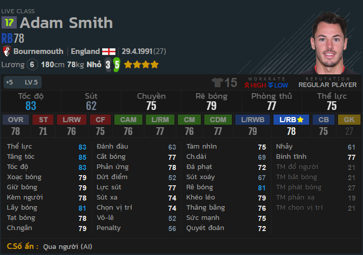 Smith có khả năng phòng ngự rất tốt, tuy nhiên đôi lúc lại hay dâng lên tham gia tấn công. Hãy để AR2 để duy trì vị trí phòng ngự cho cầu thủ này một cách tối đa.