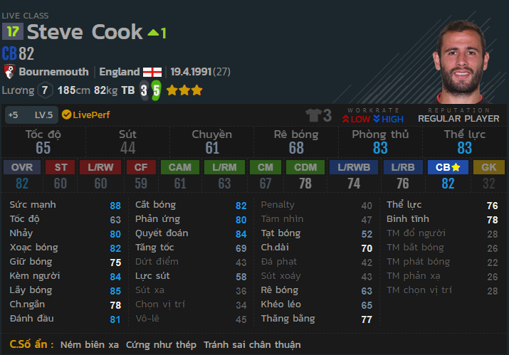 Khác với Ake, S.Cook lại không có tốc độ tốt, nhưng đổi lại ở khả năng không chiến và tranh chấp bóng bổng ingame của S.Cook lại rất tốt. Một sự bù trừ hoàn hảo cho 2 vị trí trung vệ đá cặp với nhau