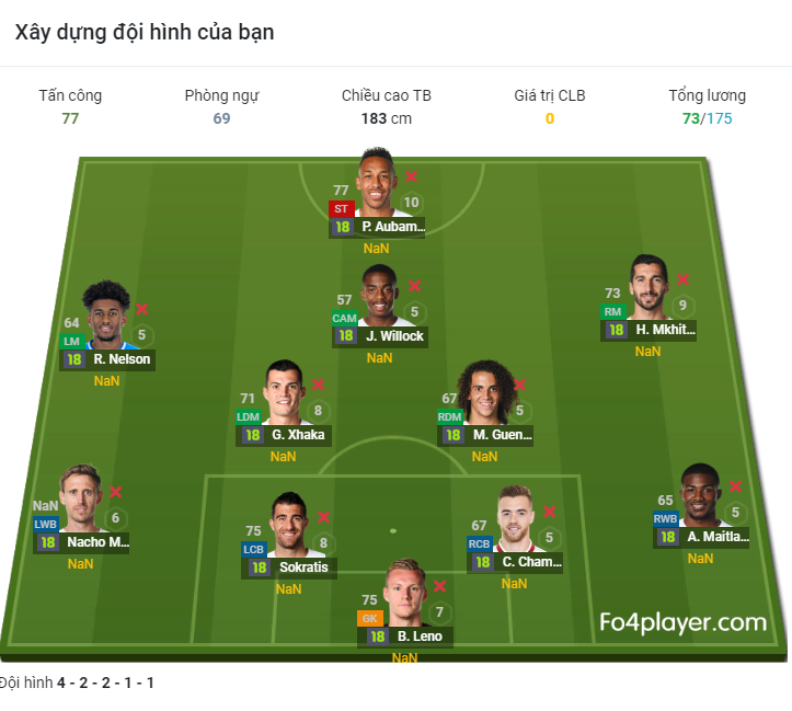 Arsenal: Bernd Leno; Ainsley Maitland-Niles, Calum Chambers, Sokratis, Nacho Monreal; Matteo Guendouzi, Granit Xhaka; Joe Willock, Henrikh Mkhitaryan, Reiss Nelson; Pierre-Emerick Aubameyang.