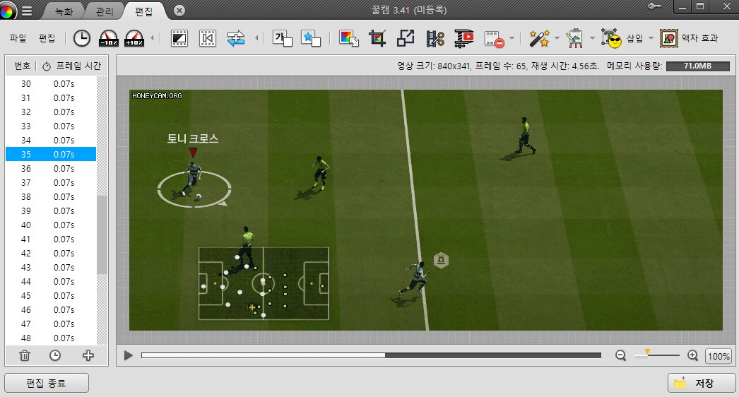 từ khung hình 35 đến 58 qua 23 khung hình mất 1,61s ( 0.07s cho mỗi khung hình )