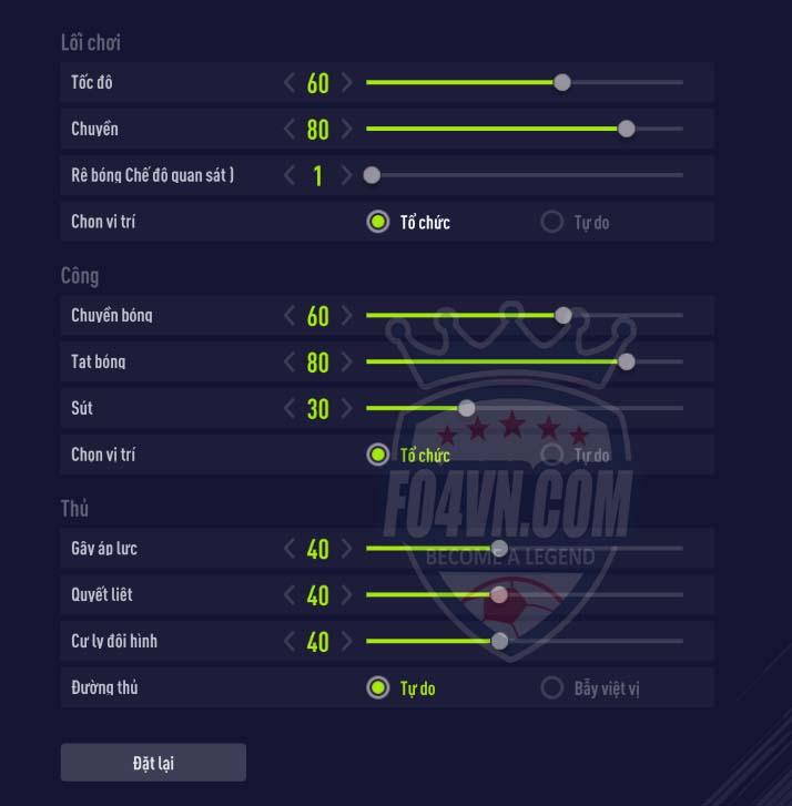 * Các bạn có thể thiết lập hàng thủ của mình mức thủ 3 nếu muốn