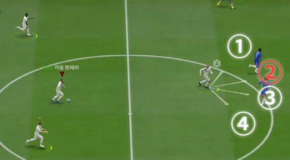 Ngay khi trung vệ của đối phương di chuyển thì HLV này tiếp tục nháy Q và chọn số 2 để vặn sườn trung vệ của đối phương đã bị lố đà và chuyền bóng tạo ra một tình huống xâm nhập mà đối phương gần như không có cơ hội sửa sai