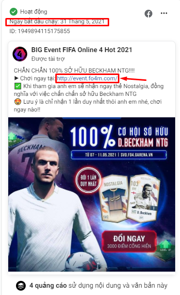Nếu các bạn để ý sẽ thấy ngay cả tên miền cũng được nhái y xì của Garena. Nhưng tên miền được thay bằng fo4m . com. Quảng cáo này được lập từ hôm 31.5.2021. Khi click vào link này sẽ ra một website có giao diện cũng không khác gì Garena, cũng rất chuyên nghiệp. Tuy nhiên đều là lừa đảo nhằm đánh cắp thông tin tài khoản của bạn. Hãy cảnh giác trước những hình thức lừa đảo có đầu tư này