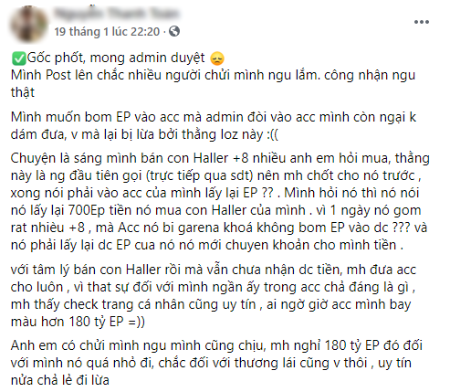 Câu chuyện dưới đây là một ví dụ được bạn chủ tút chia sẻ trên group FO4VN - Cộng đồng FIFA Online 4 Garena Việt Nam ( ) hi vọng sẽ là một bài học dành cho tất cả mọi người. Cẩn tắc vô áy láy