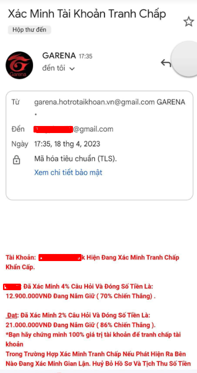 Thủ đoạn của những đối tượng xấu rất đơn giản, chúng gửi cho bạn một mail với nội dun đại loại như này : Tài khoản XXXXX của bạn đang bị tranh chấp, bạn cần xác minh để chứng thực bạn là chủ nhân của tài khoản này.