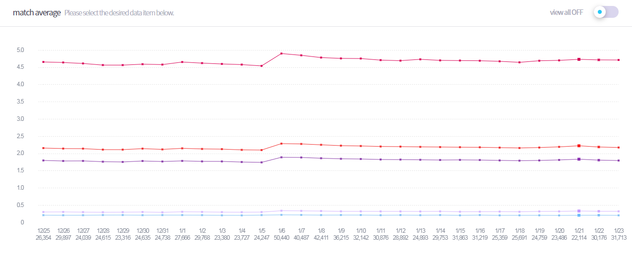 Trước đó là ngày 6.1.2022 thì biểu đồ đã có một pha gấp khúc khá lớn, đó là thời điểm Nexon đã điều chỉnh một chút gì đó, làm tỷ lệ mọi thứ đều có chiều hướng gia tăng.