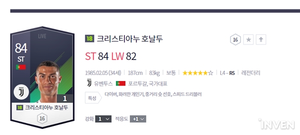Cristiano Ronaldo - OVR 84 (+1) - Lương 16 (+1)