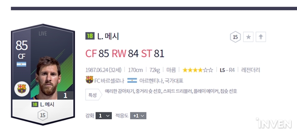 L.Messi - OVR 85 (+0) - Lương 15 (+1)