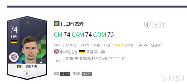 L.Goretzka - OVR 74 (-1) - Lương 9 (+0)