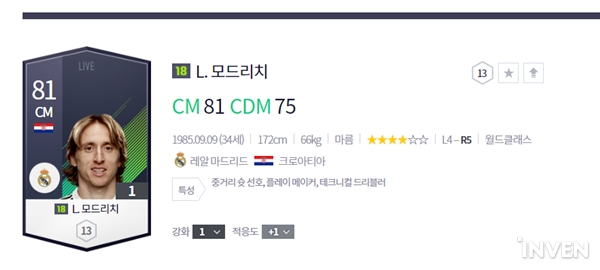 L.Modric - OVR 81 (+1) - Lương 13 (+1)