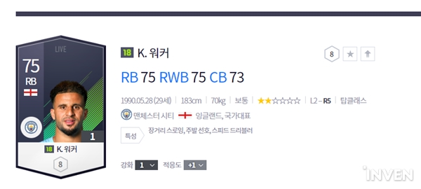K.Walker - OVR 75 (-1) - Lương 8 (-1)