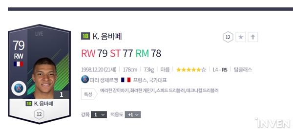 Mbappe là một trong những cầu thủ được nhiều người dùng quan tâm nhất trong game thời điểm hiện tại. Và thông tin vui cho họ là chỉ số của Mbappe đã tăng thêm 3 tuy nhiên mức lương cũng vì thế mà lên 12. Với việc gia tăng chỉ số tốc độ cũng như tăng tốc, Mbappe sẽ còn trở nên siêu tốc hơn nữa.