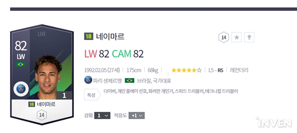 Neymar - OVR 82(+0) - Lương 14 (-1)
