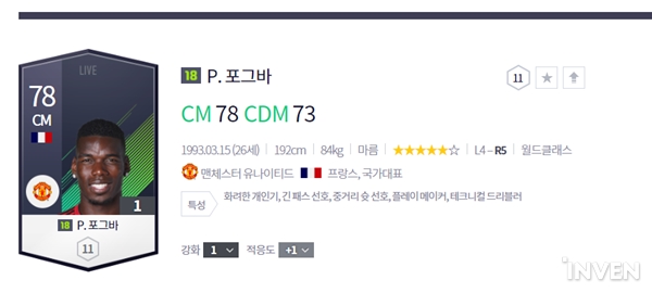 P.Pogba - OVR 78 (-1) - Lương 11 (-1)