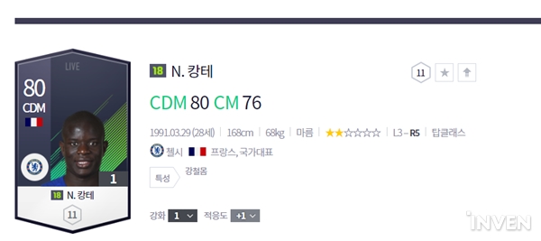 N.Kante - OVR 80 (+2) - Lương 11 (+1)