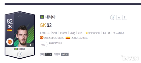 De Gea - OVR 82 (+0) - Lương 11 (+0)
