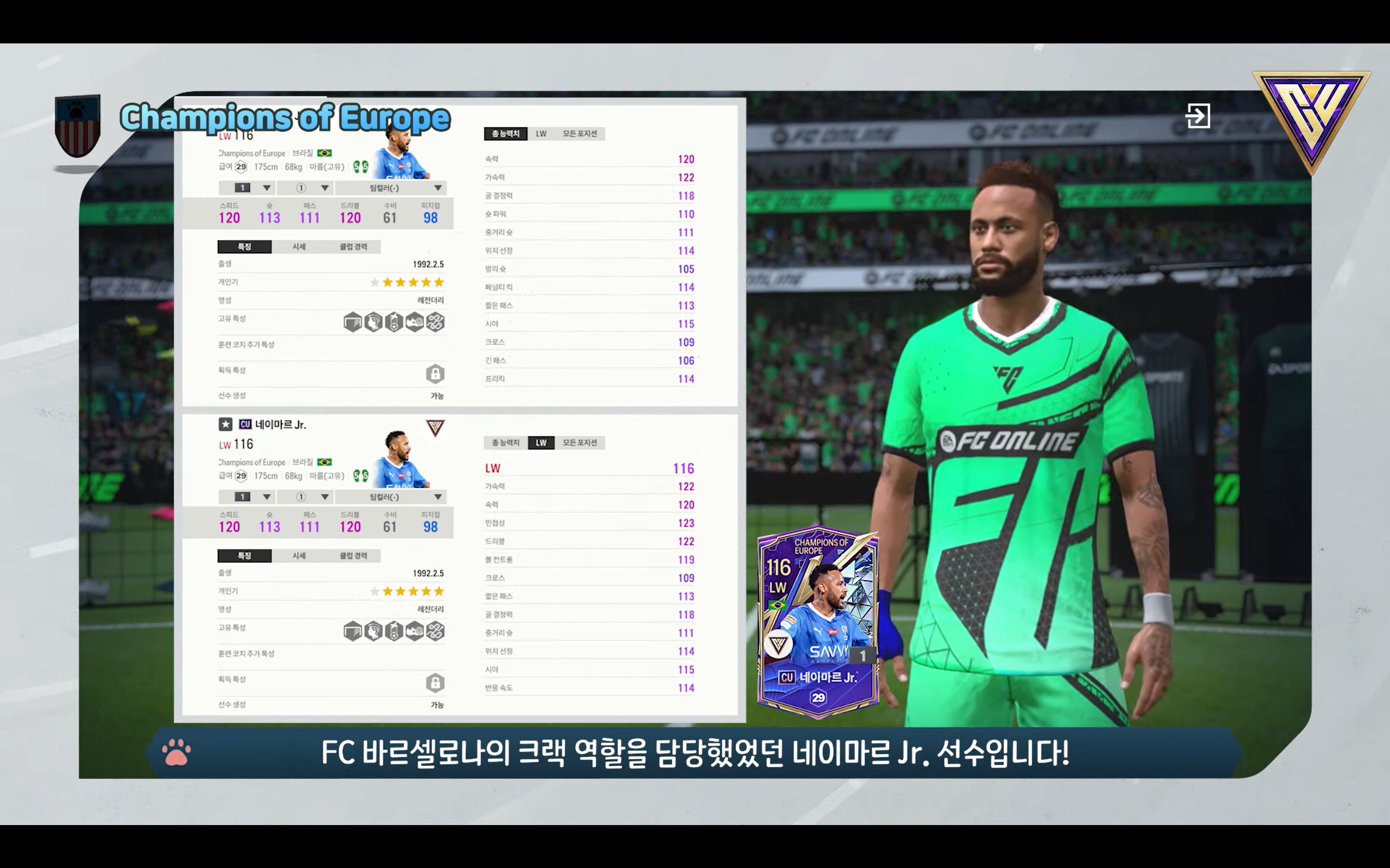 Hãy cùng tham khảo qua về chỉ số của một số cầu thủ mùa thẻ Champions of Europe trong FC Online Hàn được cập nhật trong ngày hôm nay và dự kiến sẽ được cập nhật ở Server Việt Nam trong thời gian tới.