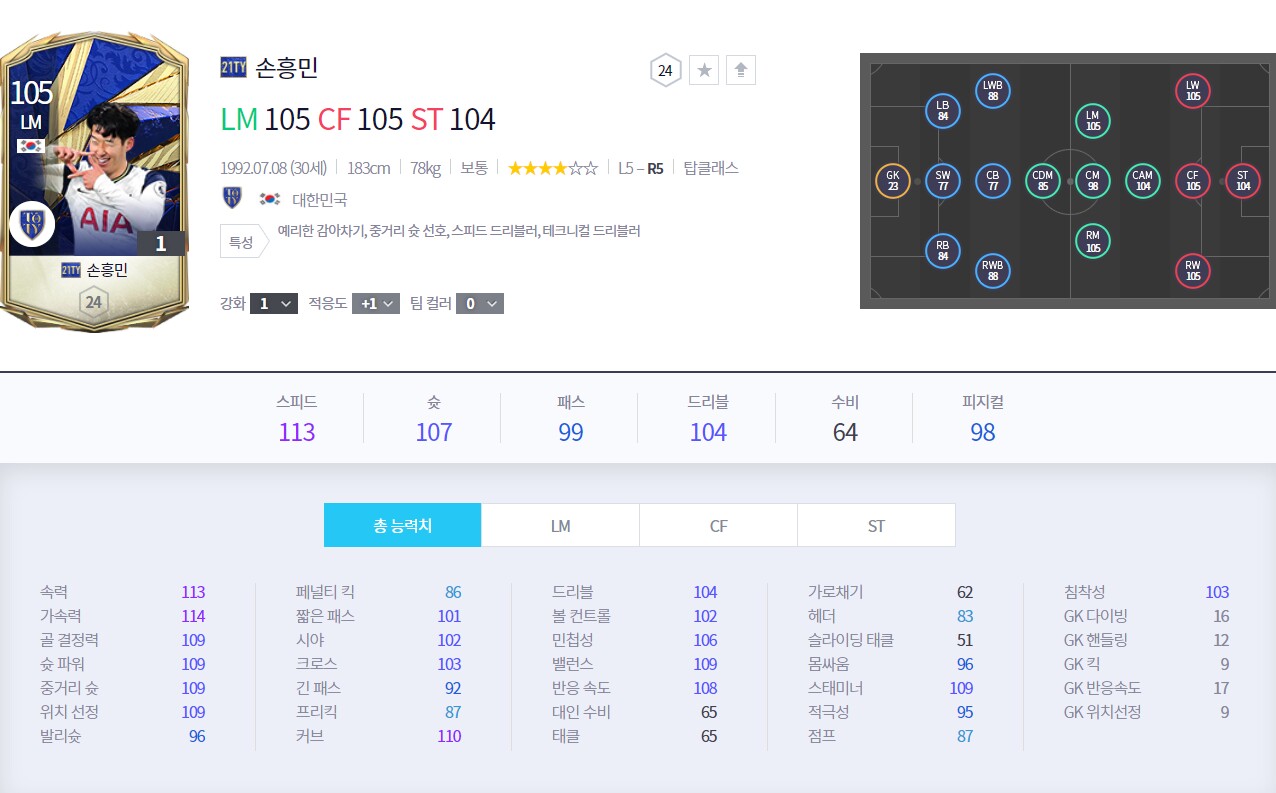 Hiện tại do các website chưa update chỉ số cầu thủ của mùa giải 21TY. Fo4vn xin gửi tới các bạn chỉ số của 12 cầu thủ thuộc đội hình 21TY, trong đó có 11 cầu thủ chính thức và 1 cầu thủ riêng của từng sever, sever Hàn là Son - Heung Min