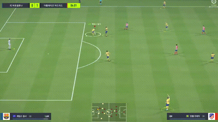 Trên hình các bạn có thể thấy, đội nhà đang bị dẫn 1-0 ở phút thứ 4. và thanh thể lực của Milner lúc này chắc chắn còn đầy, khi điều khiển cầu thủ này chạy E, thanh lực sẽ giảm, trong đó màu trắng là thể lực tổng - giảm khá chậm, thanh màu xanh dương giảm nhanh là thể lực hiện tại khi thực hiện một thao tác.