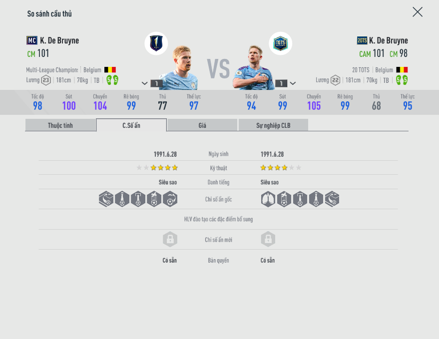 Kevin Bruyne của mùa giải MC có kỹ năng thánh chuyền còn mùa giải 20TS không có. Tuy nhiên nếu để nói rằng hiệu quả trong đường chuyền gần như không cảm thấy sự khác biệt nào cả. AI của Bruyne vẫn không có sự thay đổi nào trong khâu chuyền bóng. Vẫn rất tốt đúng không ?