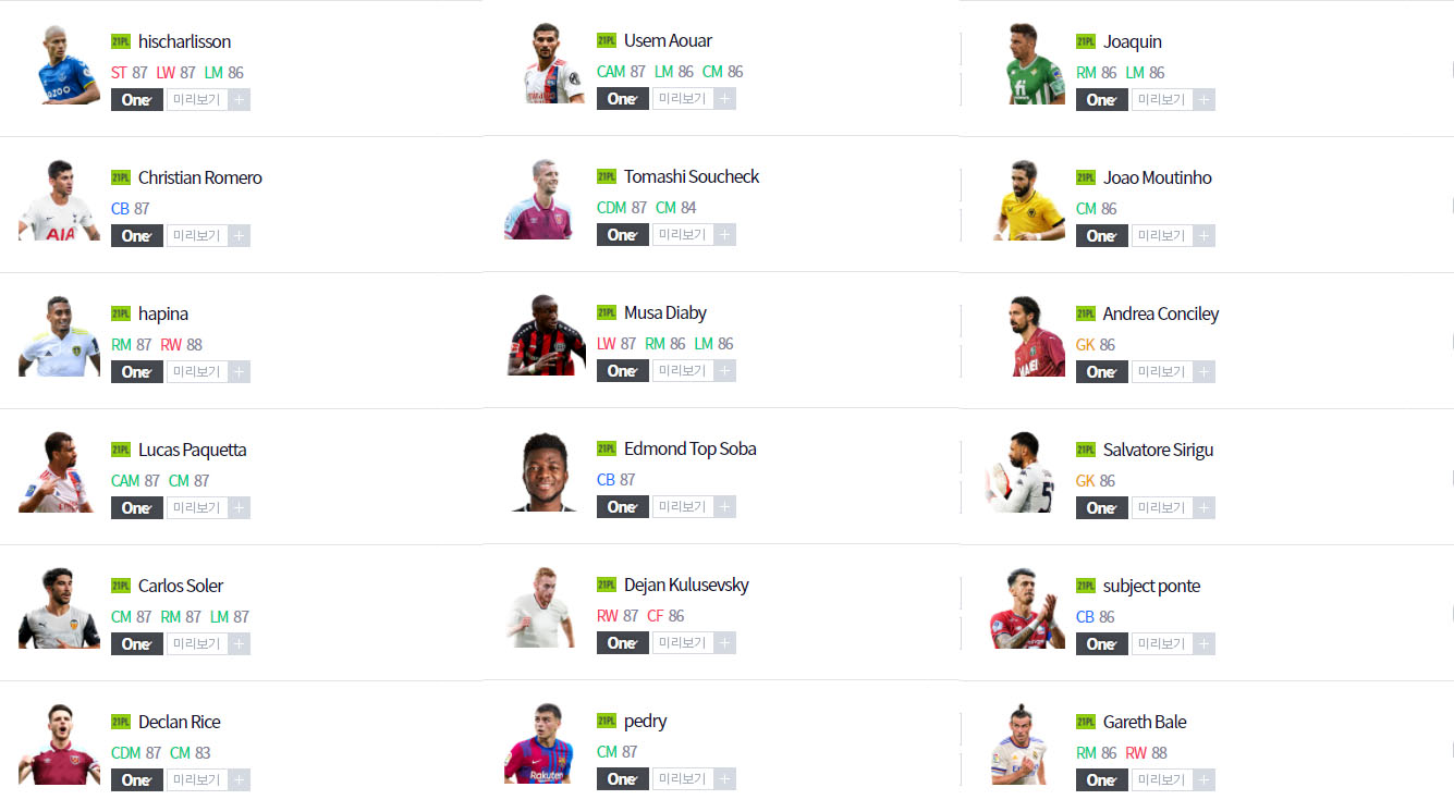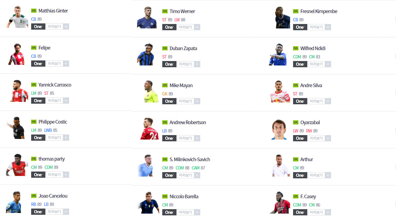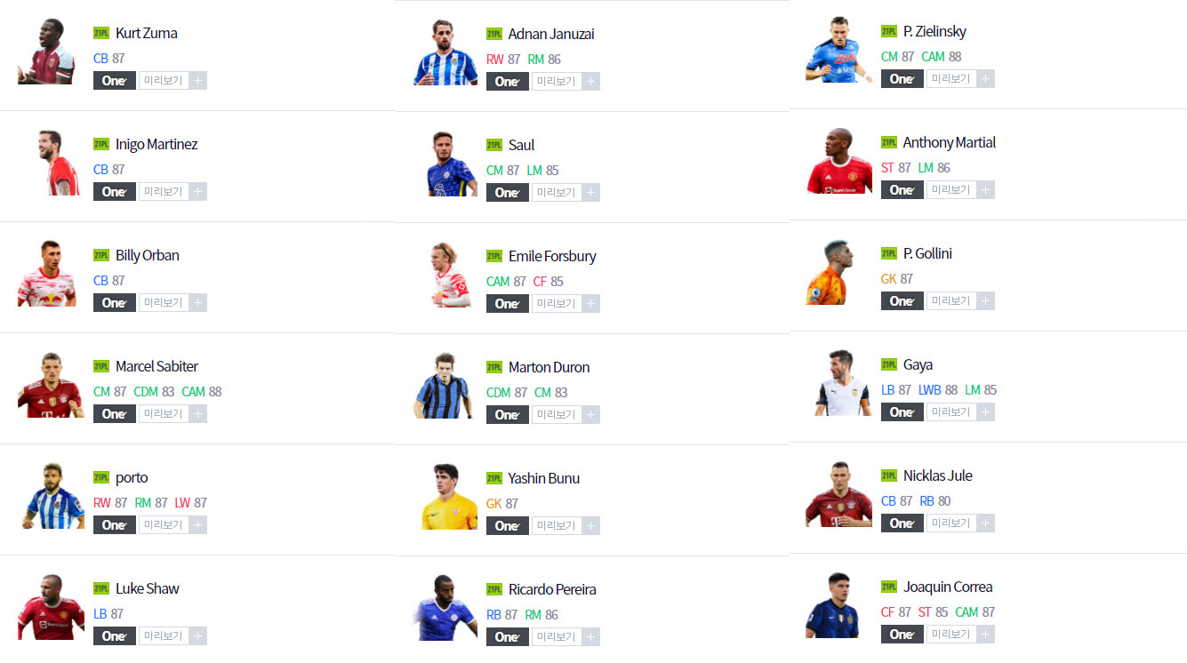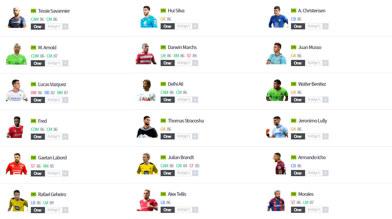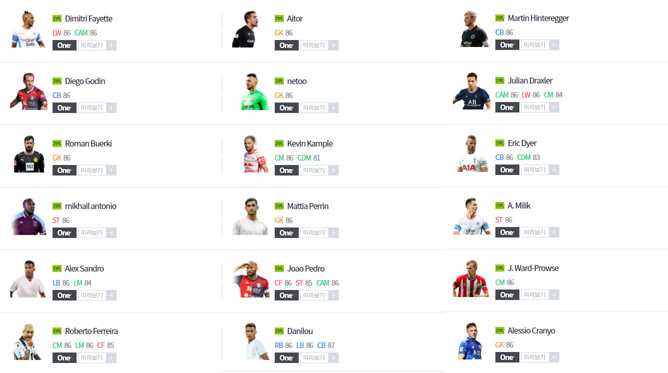 Do số lượng của mùa giải này là cực nhiều nên chúng tôi chỉ gửi tới các bạn một phần những cầu thủ có chỉ số ở mức 86 trở lên