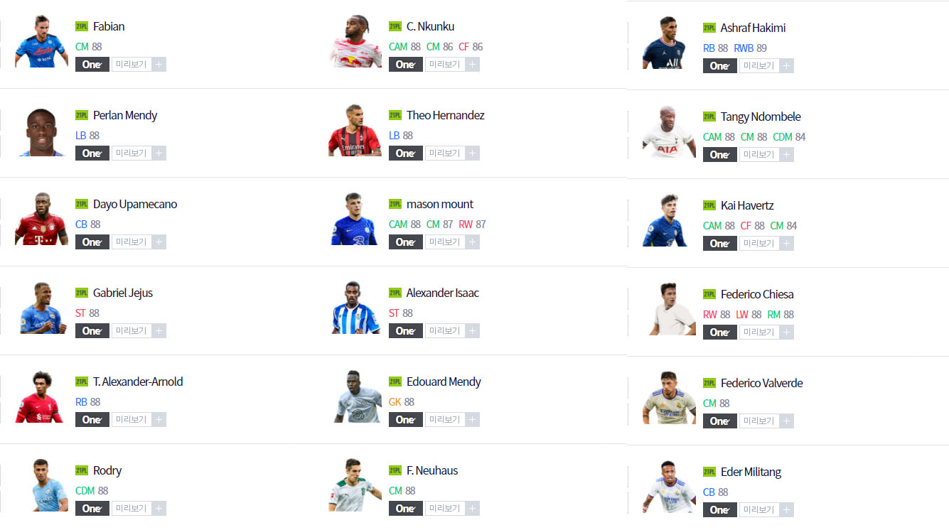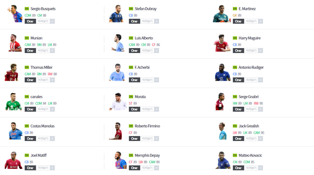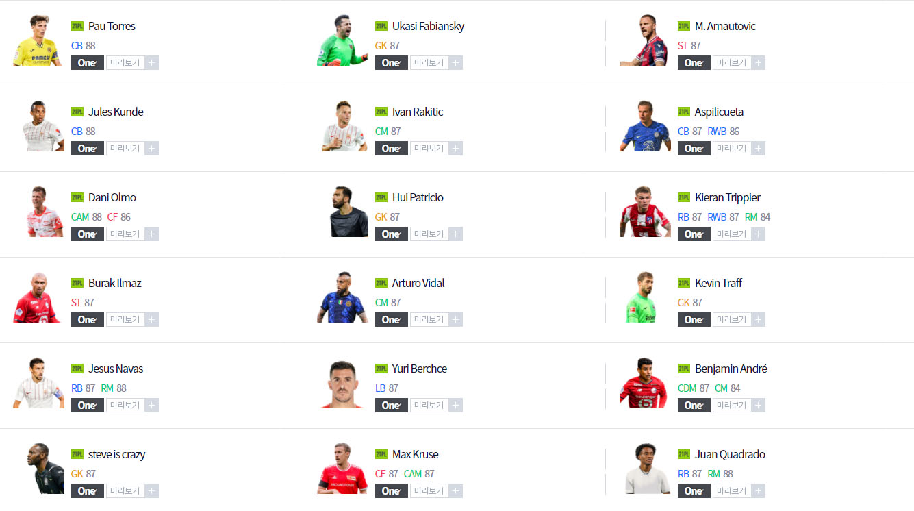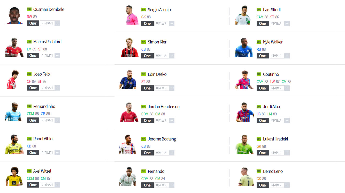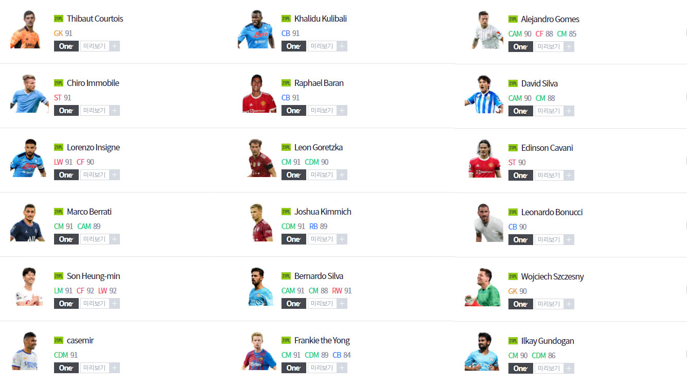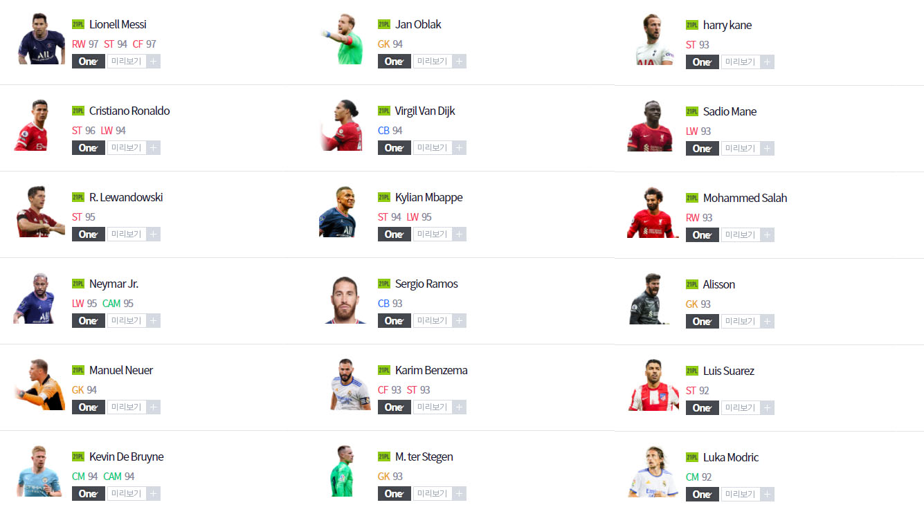 Do số lượng của mùa giải này là cực nhiều nên chúng tôi chỉ gửi tới các bạn một phần những cầu thủ có chỉ số ở mức 86 trở lên