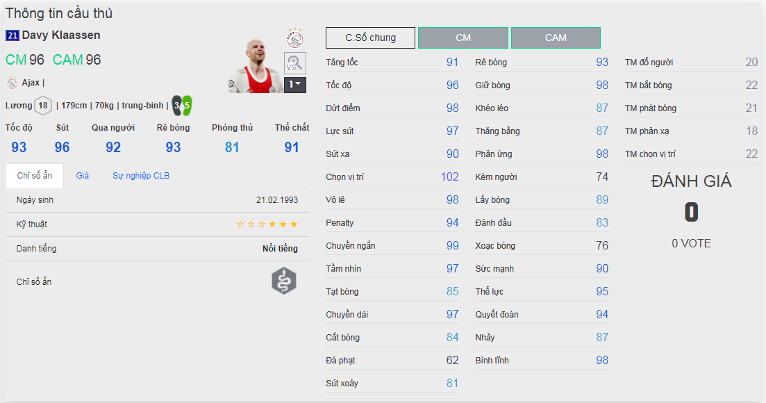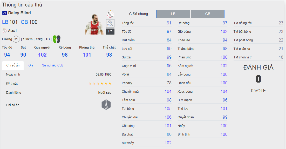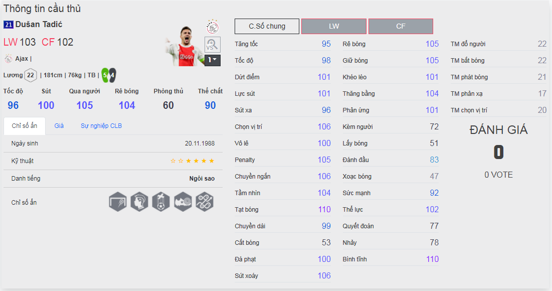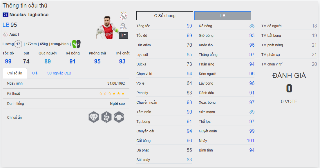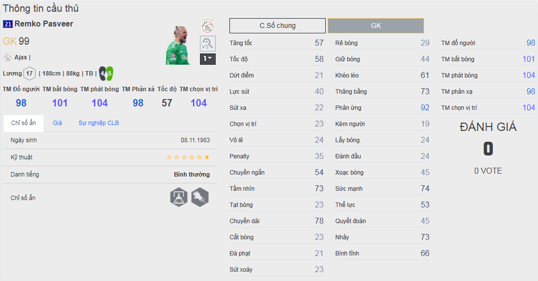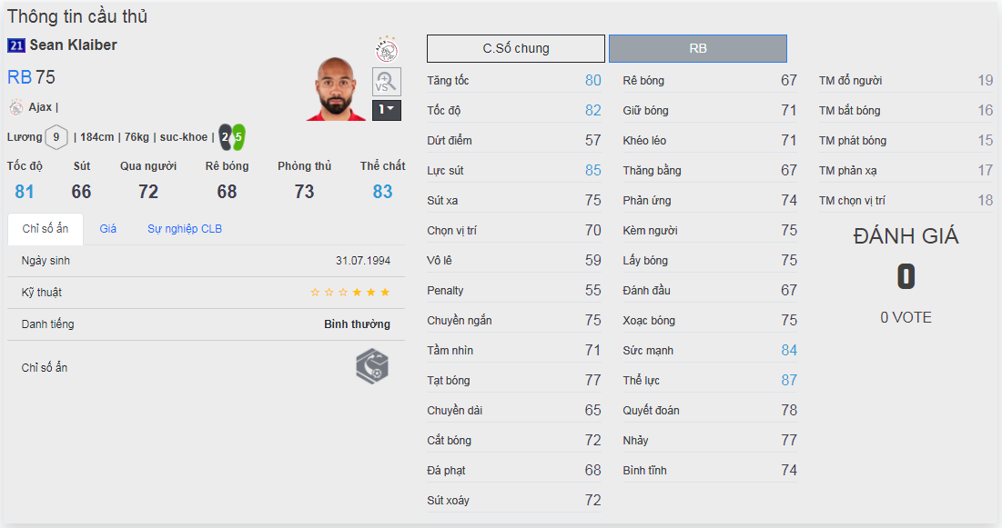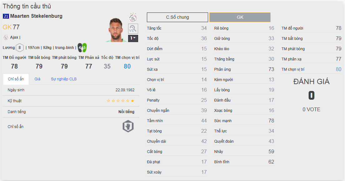 Chú ý : phần thể hình của cầu thủ chưa được chuẩn xác lắm, nên các bạn xem chỉ số để tham khảo