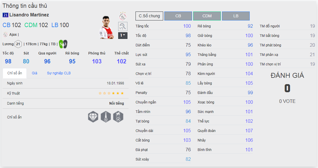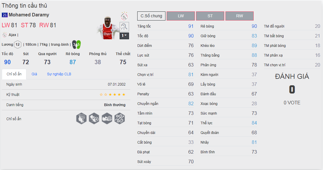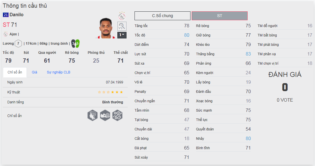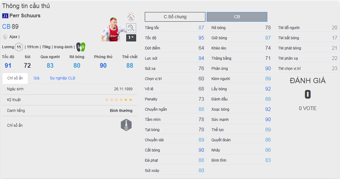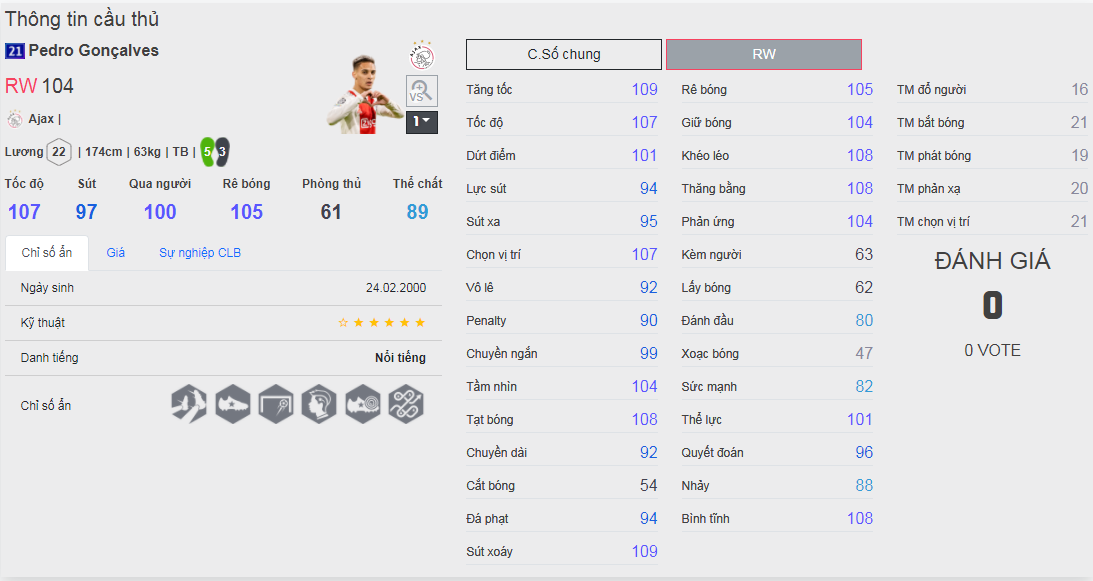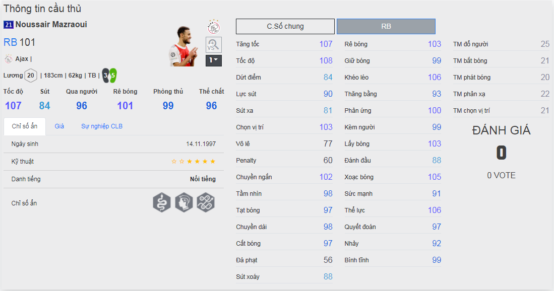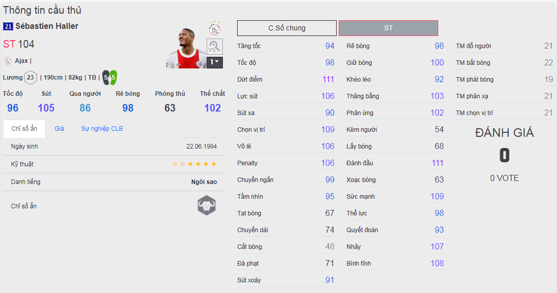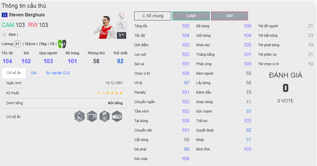 Chú ý : phần thể hình của cầu thủ chưa được chuẩn xác lắm, nên các bạn xem chỉ số để tham khảo