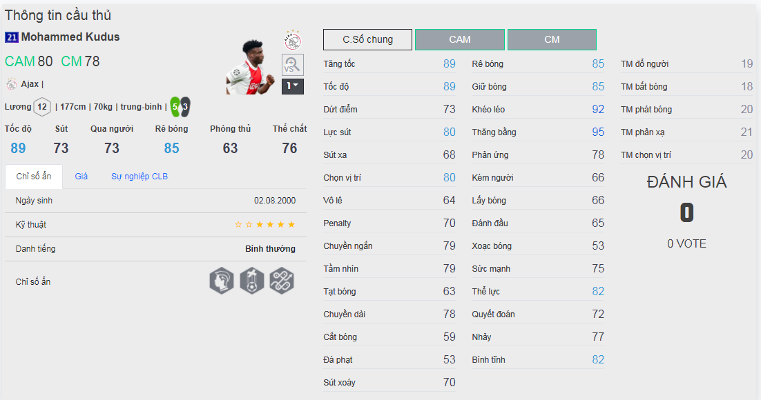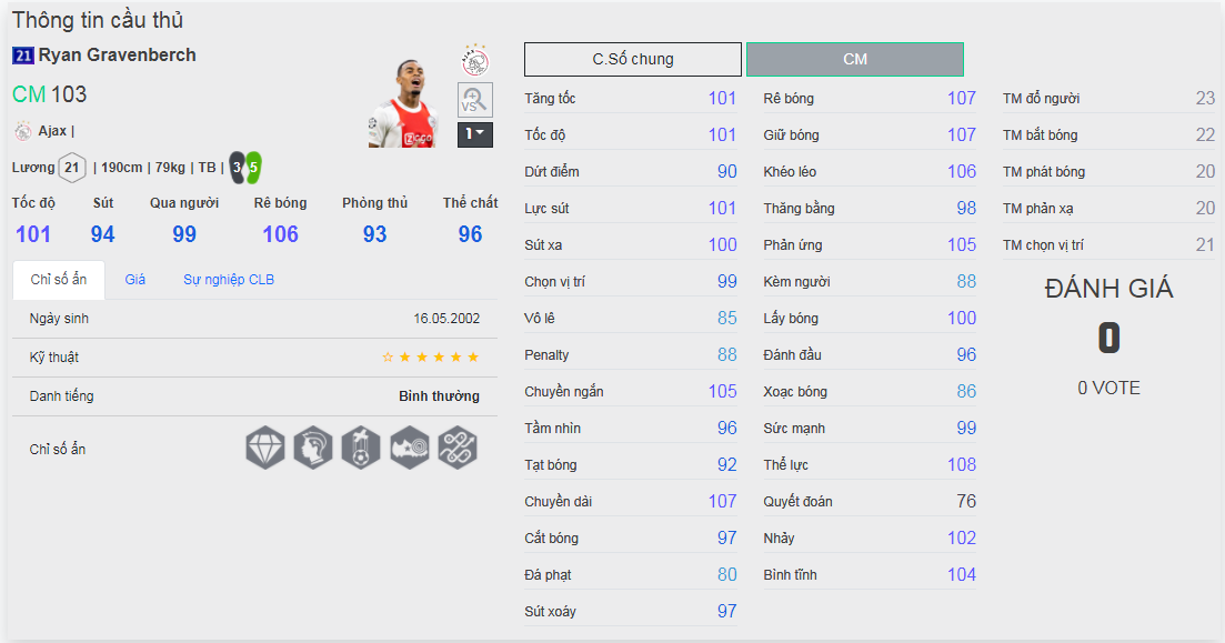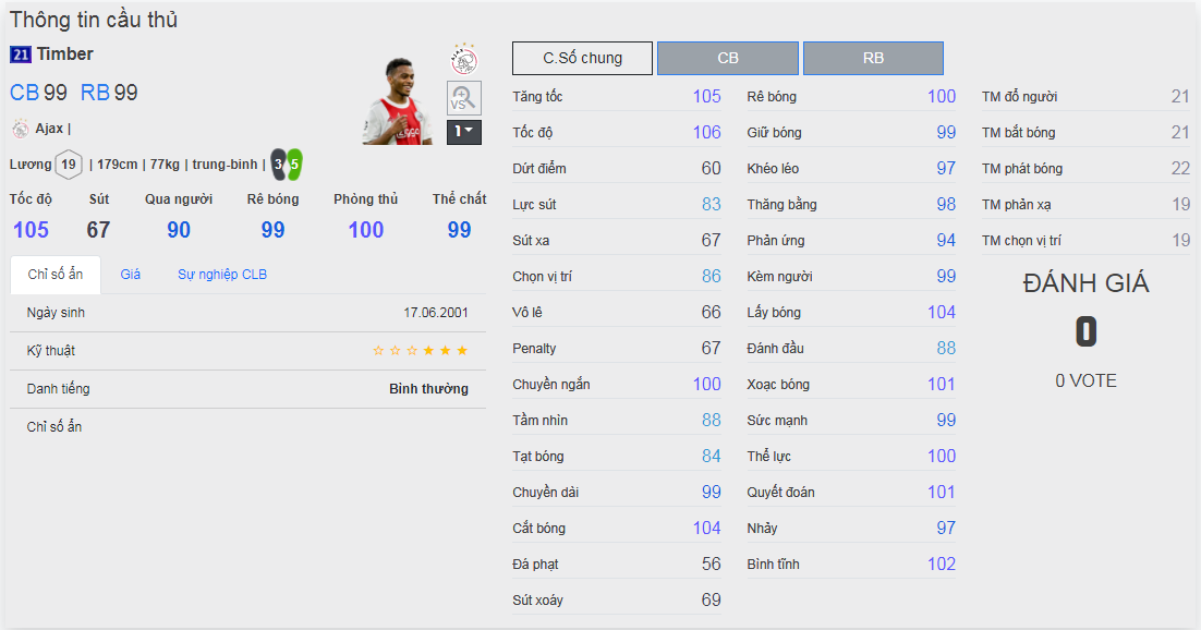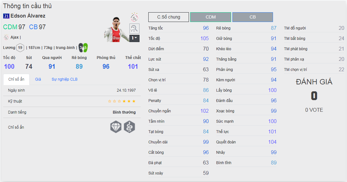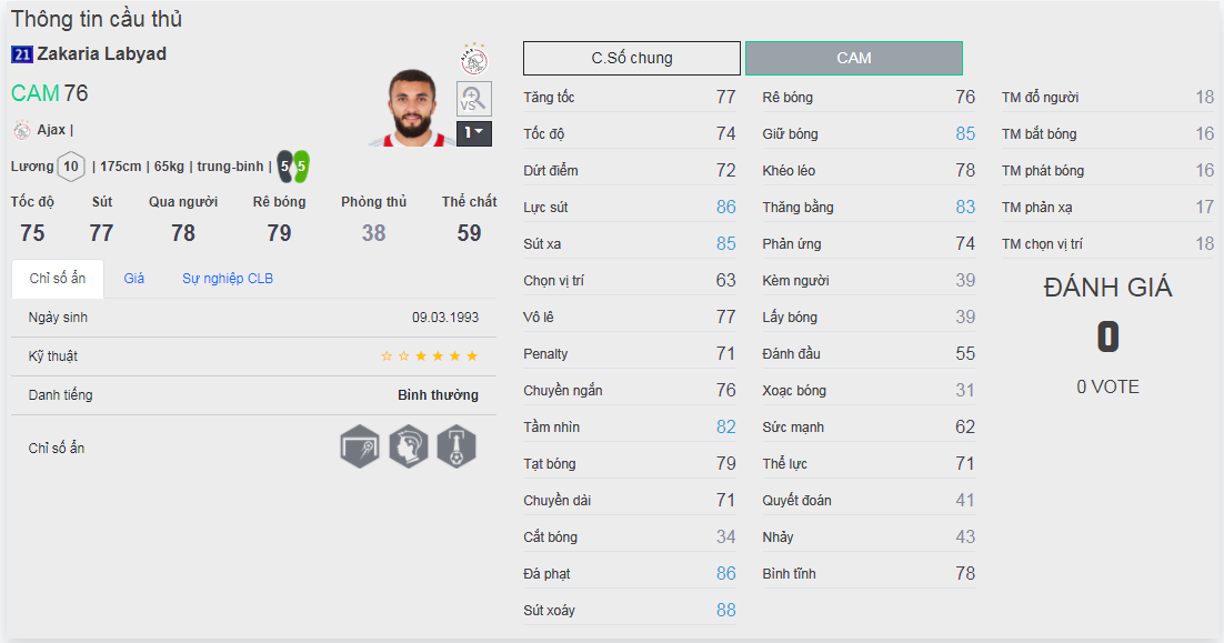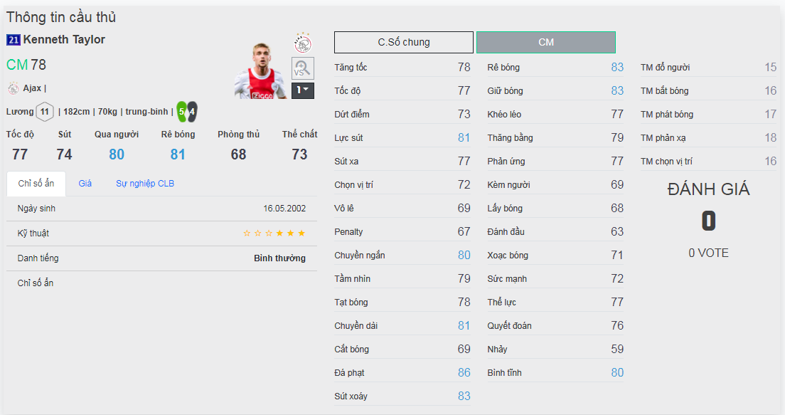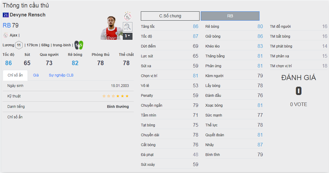 Chú ý : phần thể hình của cầu thủ chưa được chuẩn xác lắm, nên các bạn xem chỉ số để tham khảo